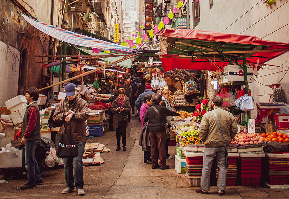 夕食の買い出しまでの束の間、ホテルの窓から街の様子を観察。香港の下町を凝縮したような眺めでした。